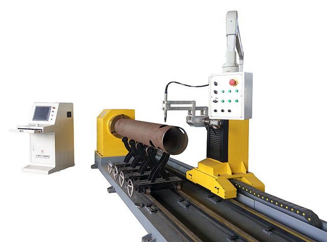 YC-XGX系列數(shù)控相貫線切割機(相貫線坡口切割機)是一種對鋼管端部結合處作自動計算和切斷的設備。該機器能廣泛應用于造船、建筑、石化、機械、冶金等行業(yè)的管道結構件的切割加工。操作工人不須編程、只需輸入相互配合的管子的半徑、相交角度等參數(shù),機器就能自動切割出管子的相貫線、相貫孔、以及焊接坡口,不再需要人工打磨。